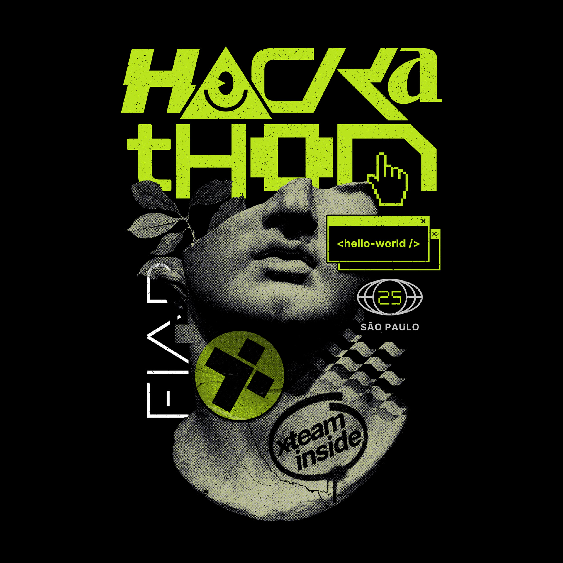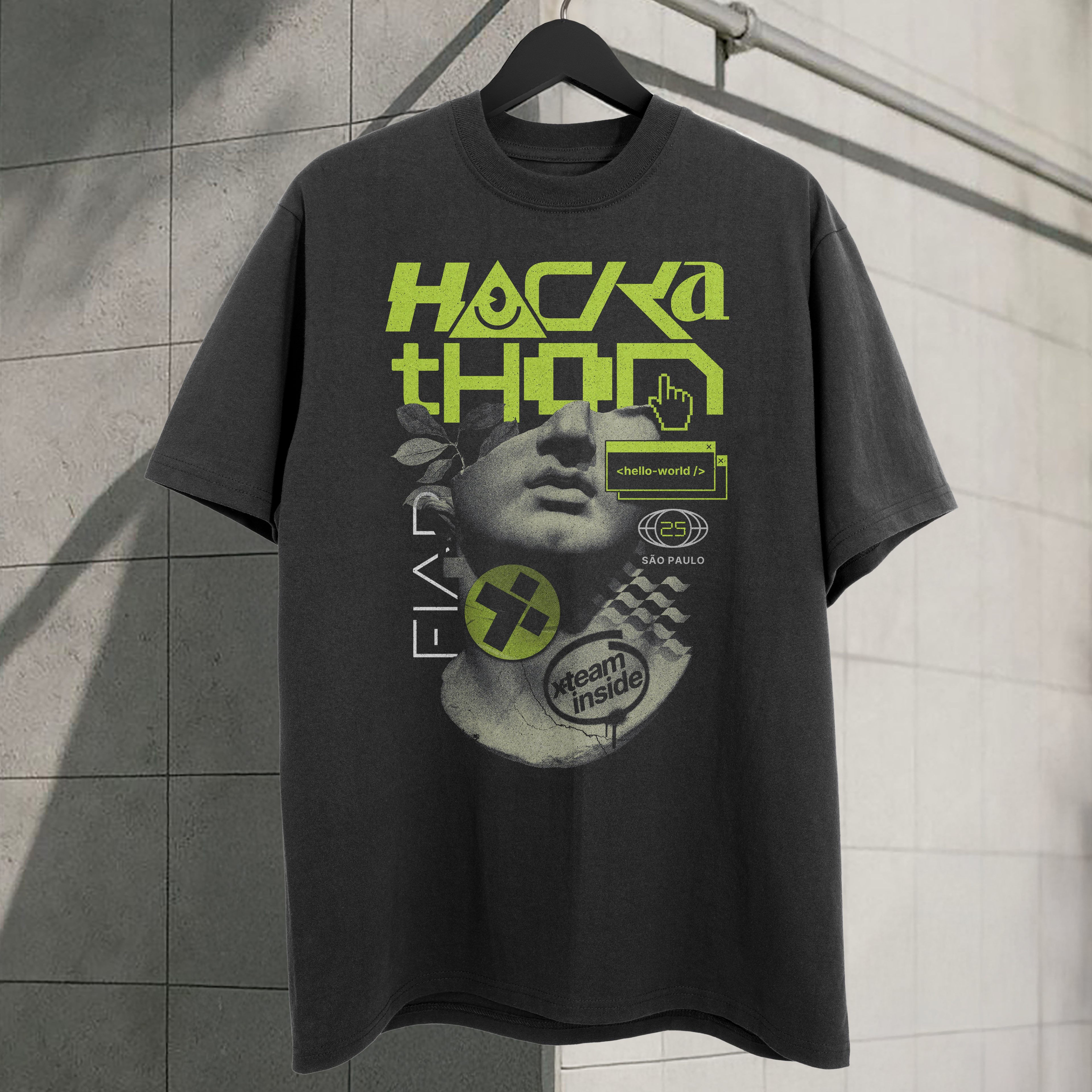 Hackathon energy, X-Team style. Custom tee design created for an X-Team–sponsored Hackathon in Brazil, blending tech culture, experimentation, and bold visual storytelling.